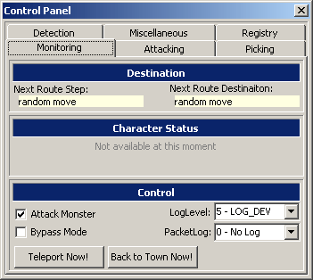 - Attack Monster - ใช้ควบคุมให้บอทโจมตี หรือหยุดโจมตีมอนสเตอร์เป็นการชั่วคราว